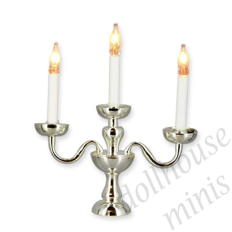 12v candlestick silver 3 arms miniature 1:12