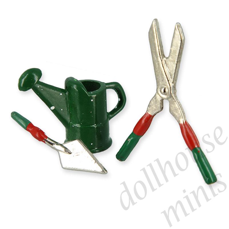 3 green garden tools miniature 1:12
