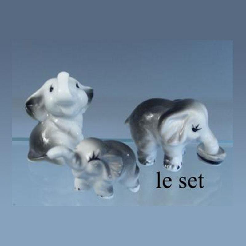 3 pc family bone china set: elephant miniature 1:12