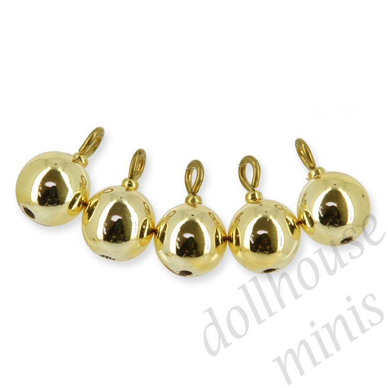 5 larg gold x'mas baubles miniature 1:12
