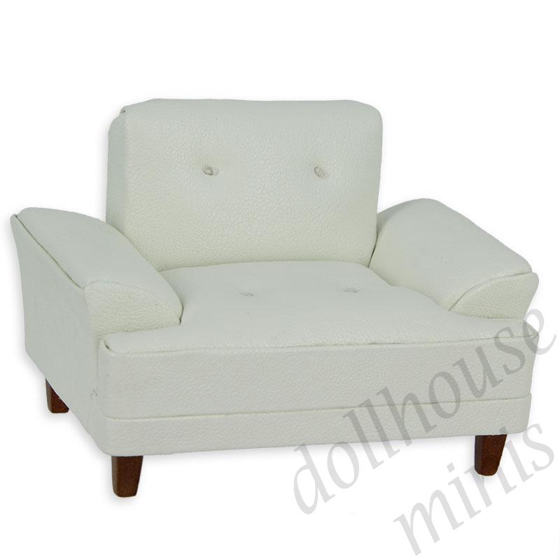 armchair fabrick white leather miniature 1:12