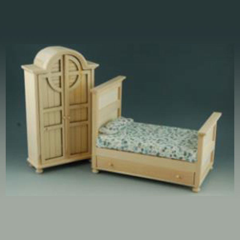 Bed and night stand bare wood
