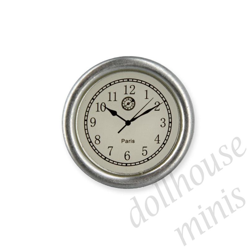 clock silver miniature 1:12