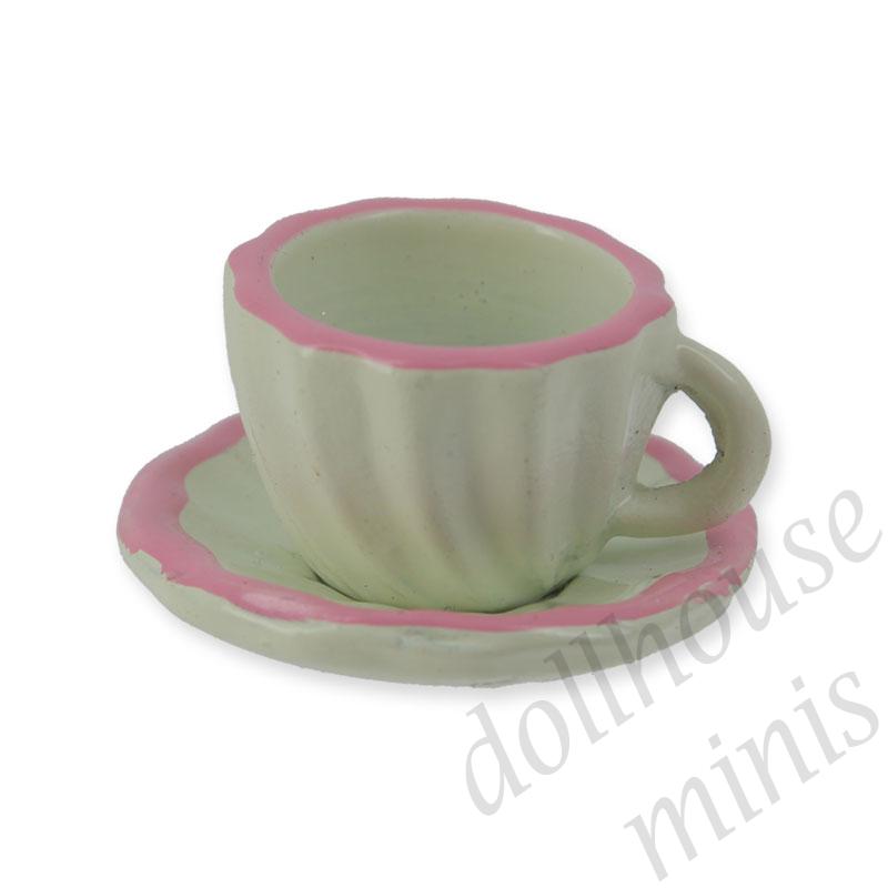 coffee cup + saucer ,pink miniature 1:12