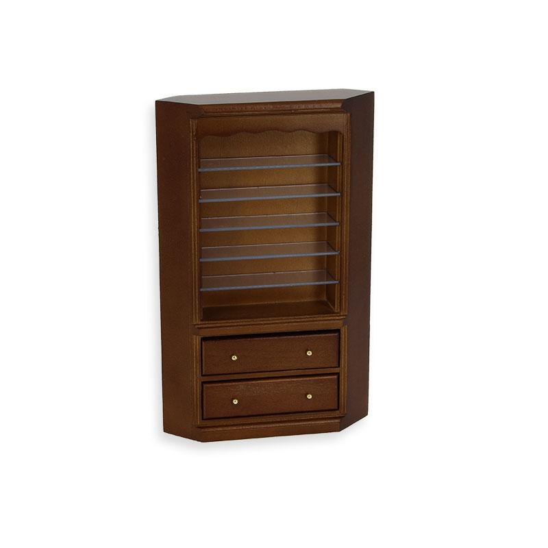 corner bookcase walnut miniature 1:12