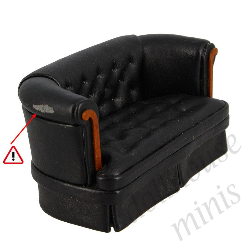 double seat sofa walnut/black laeather - damaged miniature 1:12