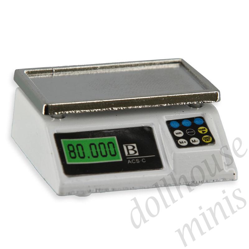 food weight scale white miniature 1:12