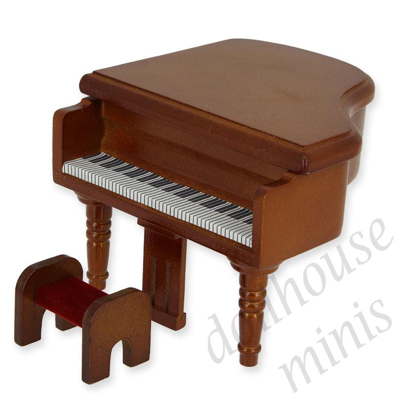 grand piano brown w stool cherrywood miniature 1:12