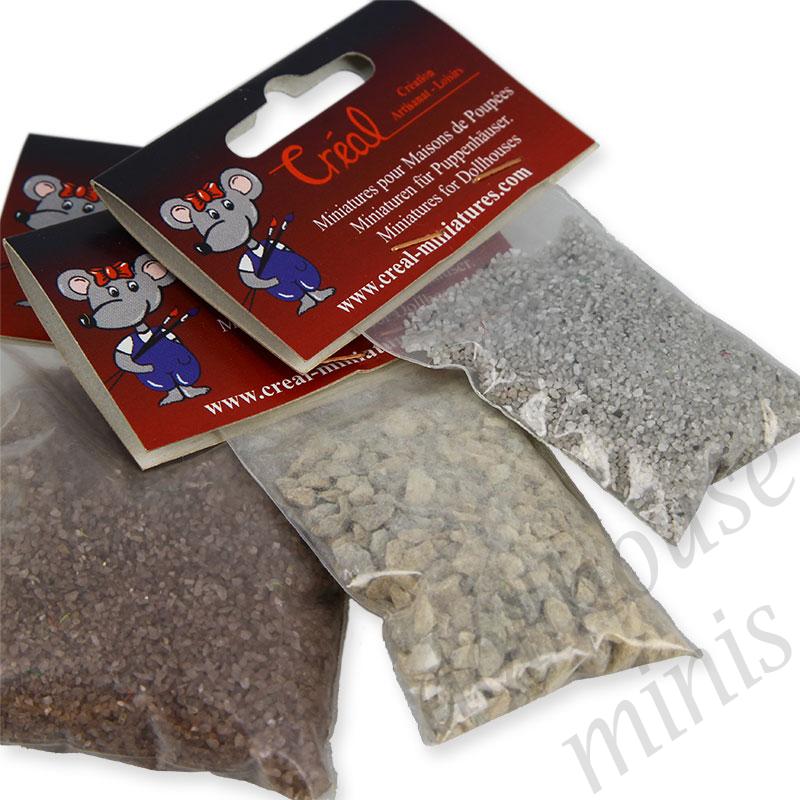 pack of 2 bags of brown and grey gravel, 1 bag of coarse grey gravel miniature 1:12