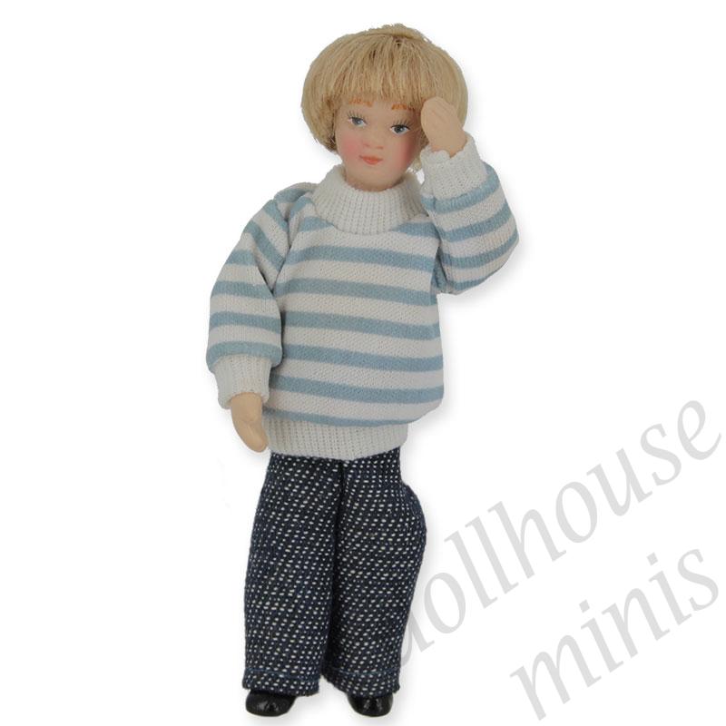 porcelain doll with blue and white pullover miniature 1:12