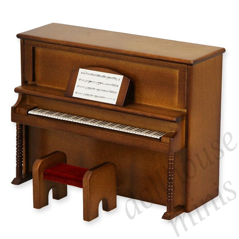 upright piano w stool walnut miniature 1:12